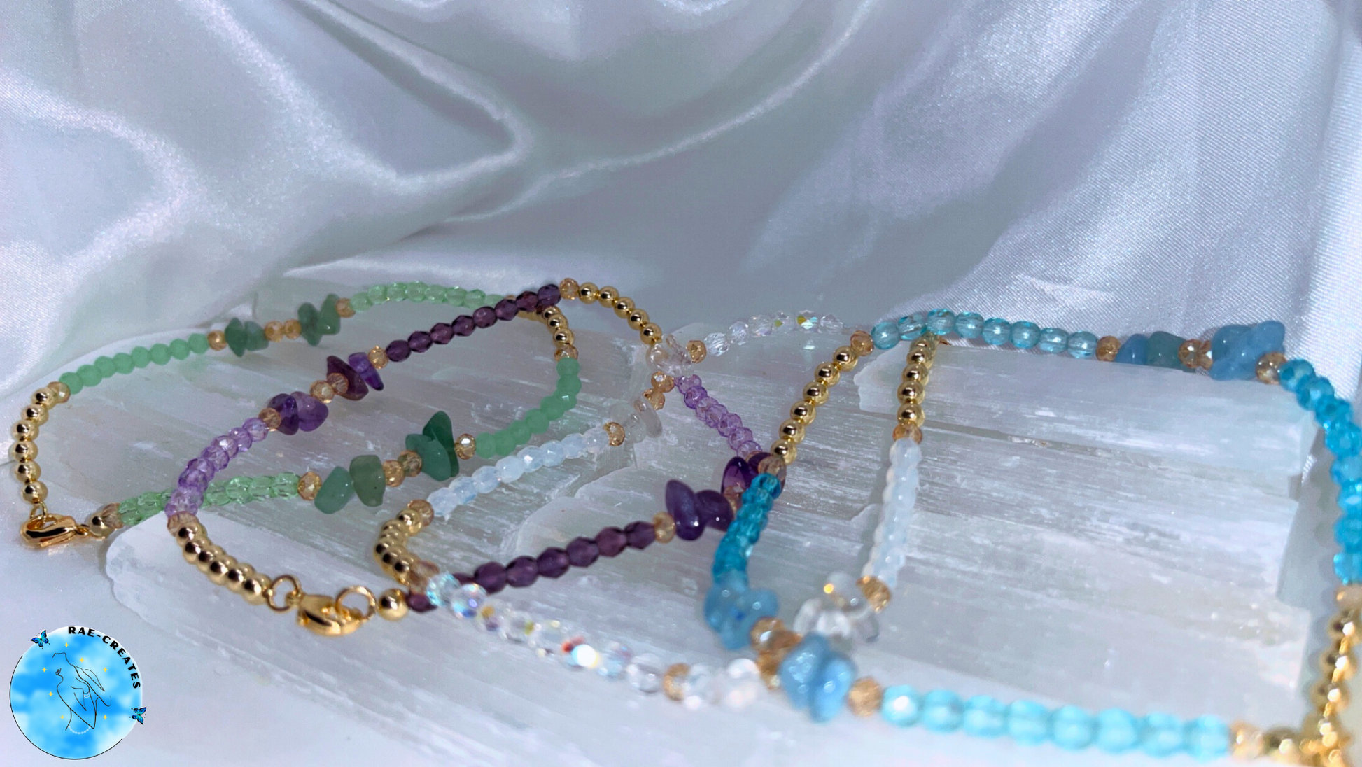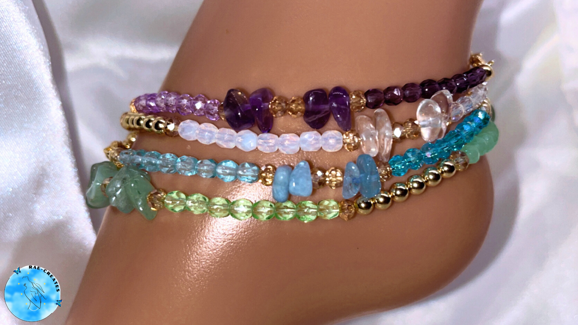 Designed to align with your energy, this handcrafted anklet features a blend of gold accent beads, colorful faceted beads, and genuine crystal chip beads đŚâ¨