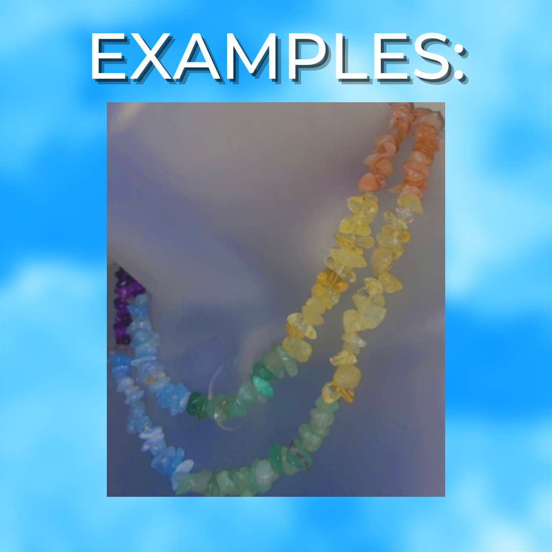 Our jewelry is created with stretch string. Waistbeads, Thighbeads, Garter Sets, Necklaces, & Anklets come with a gold or silver clasp.