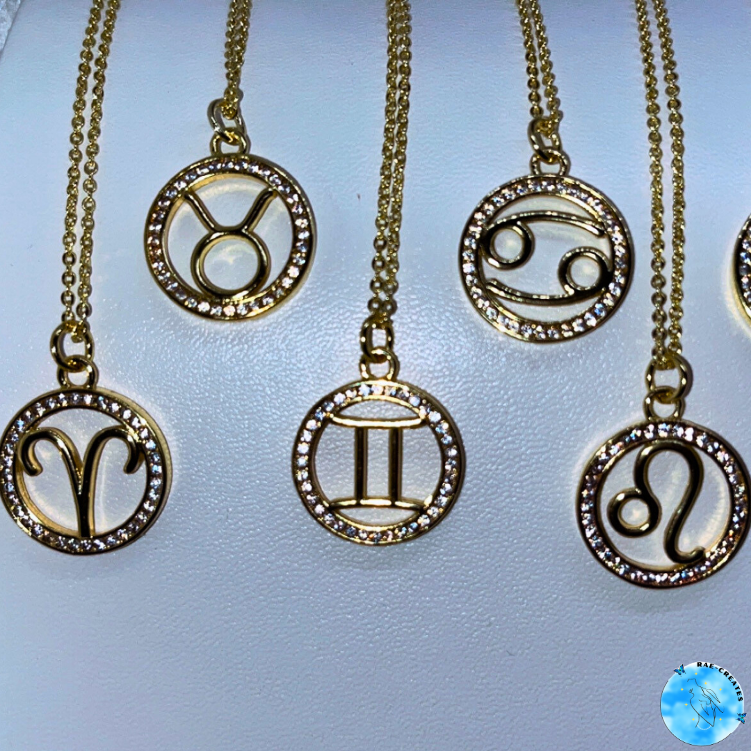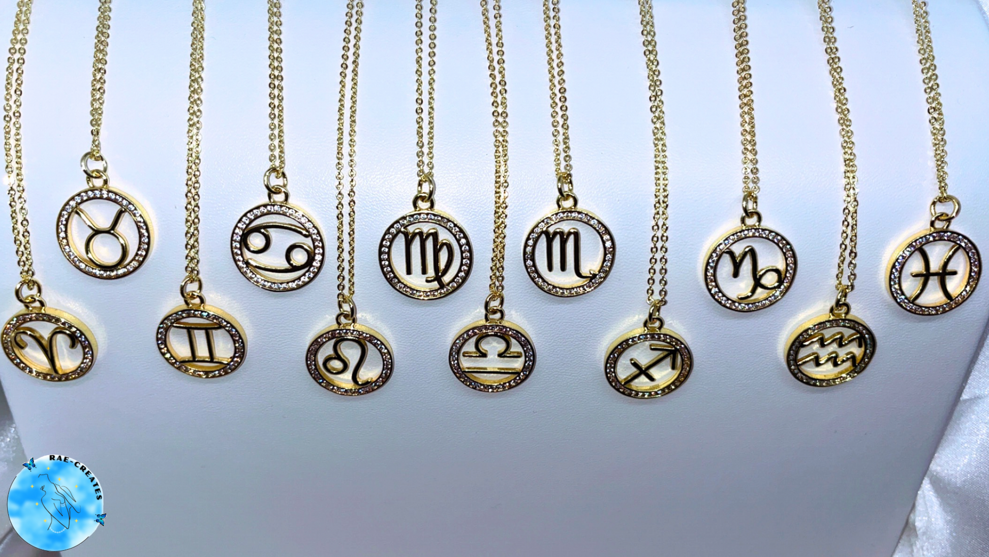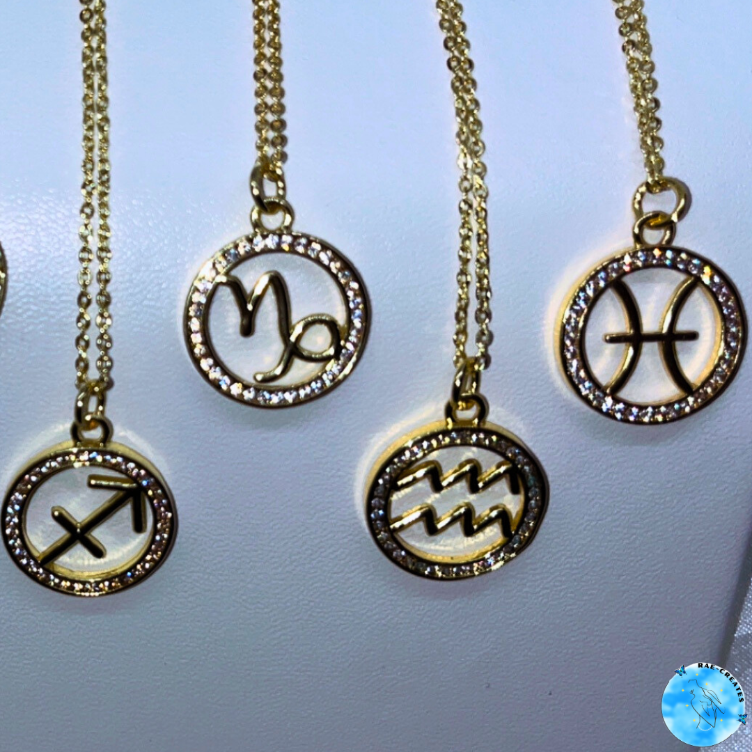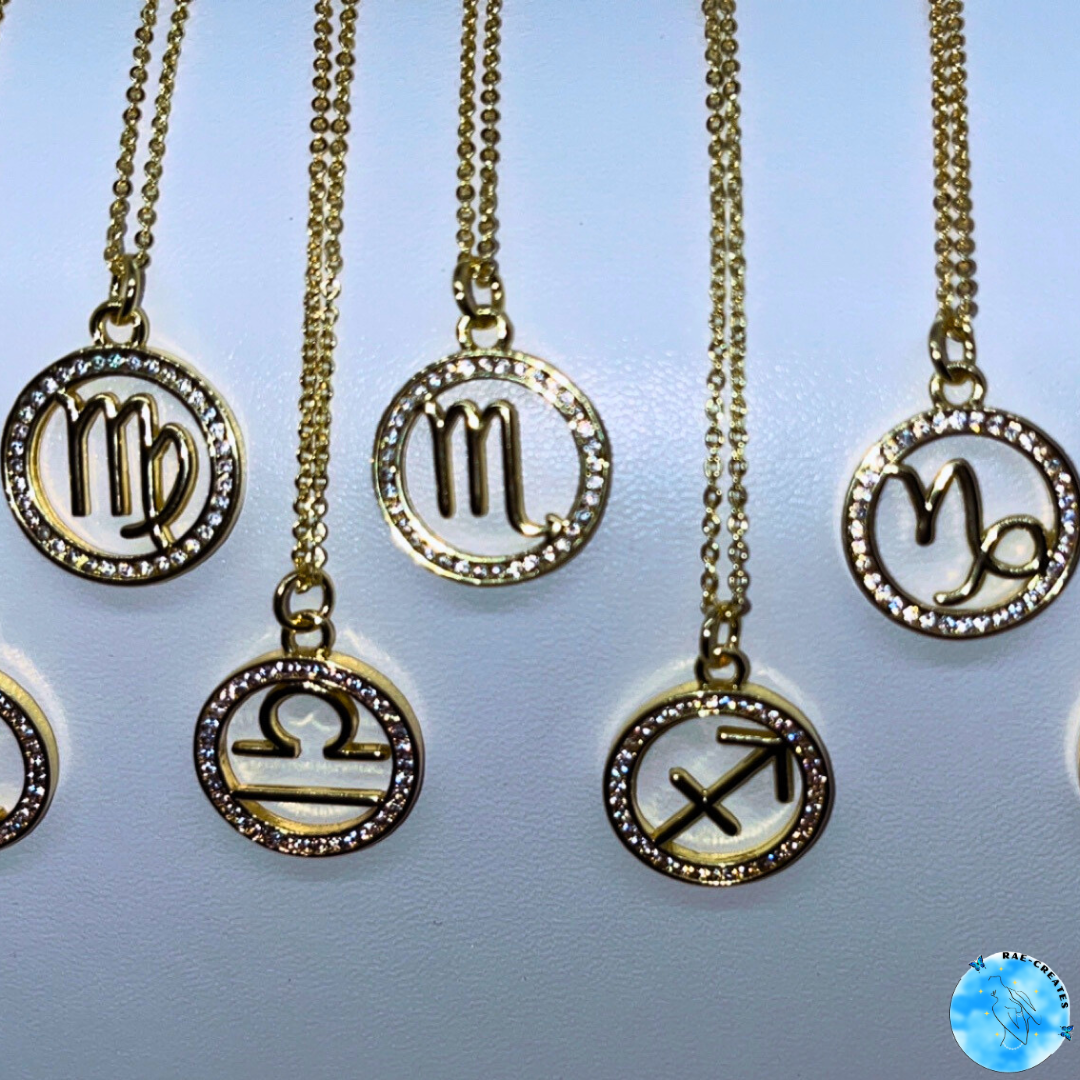 Embrace your cosmic energy with the Zodiac Symbol Necklace in gold. This beautifully crafted piece features your chosen zodiac sign within a sleek circular pendant, with a beautiful border of shimmering accents.