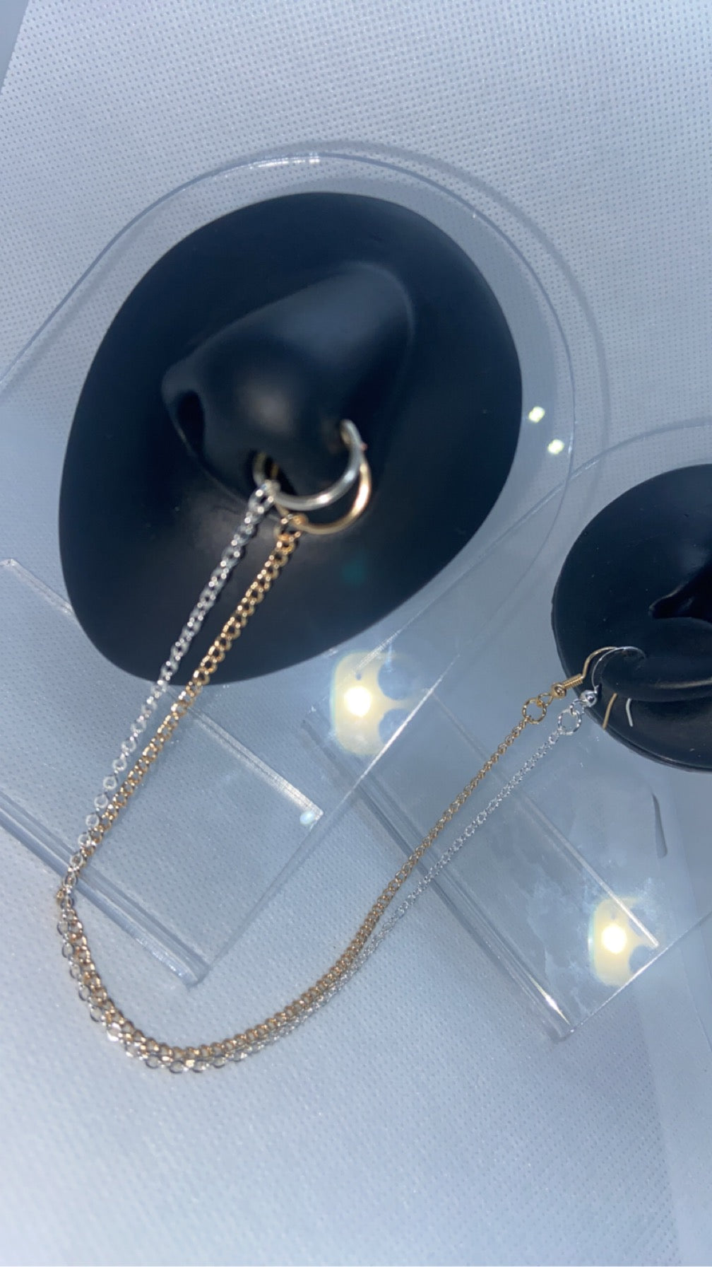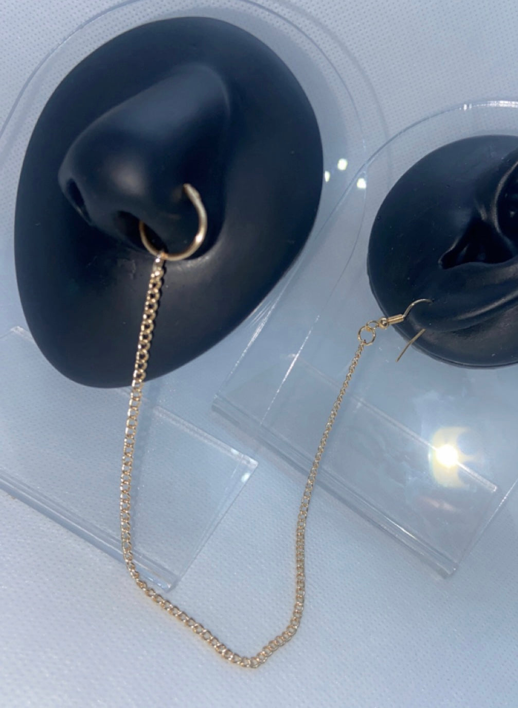 Wire Hoop Nose Cuff with Chain attached to Earring✨🦋 Comes in Silver or GoldÂ